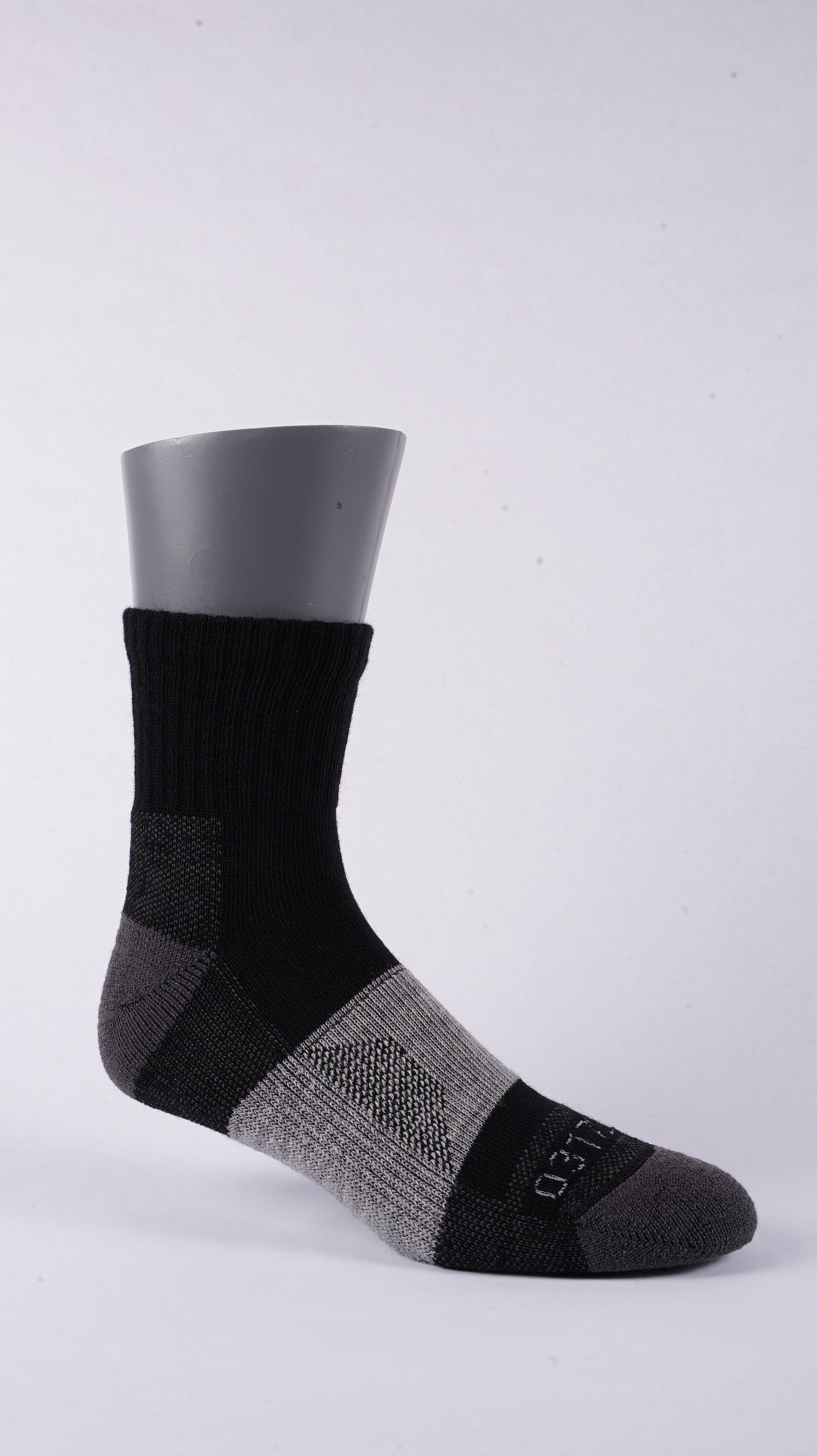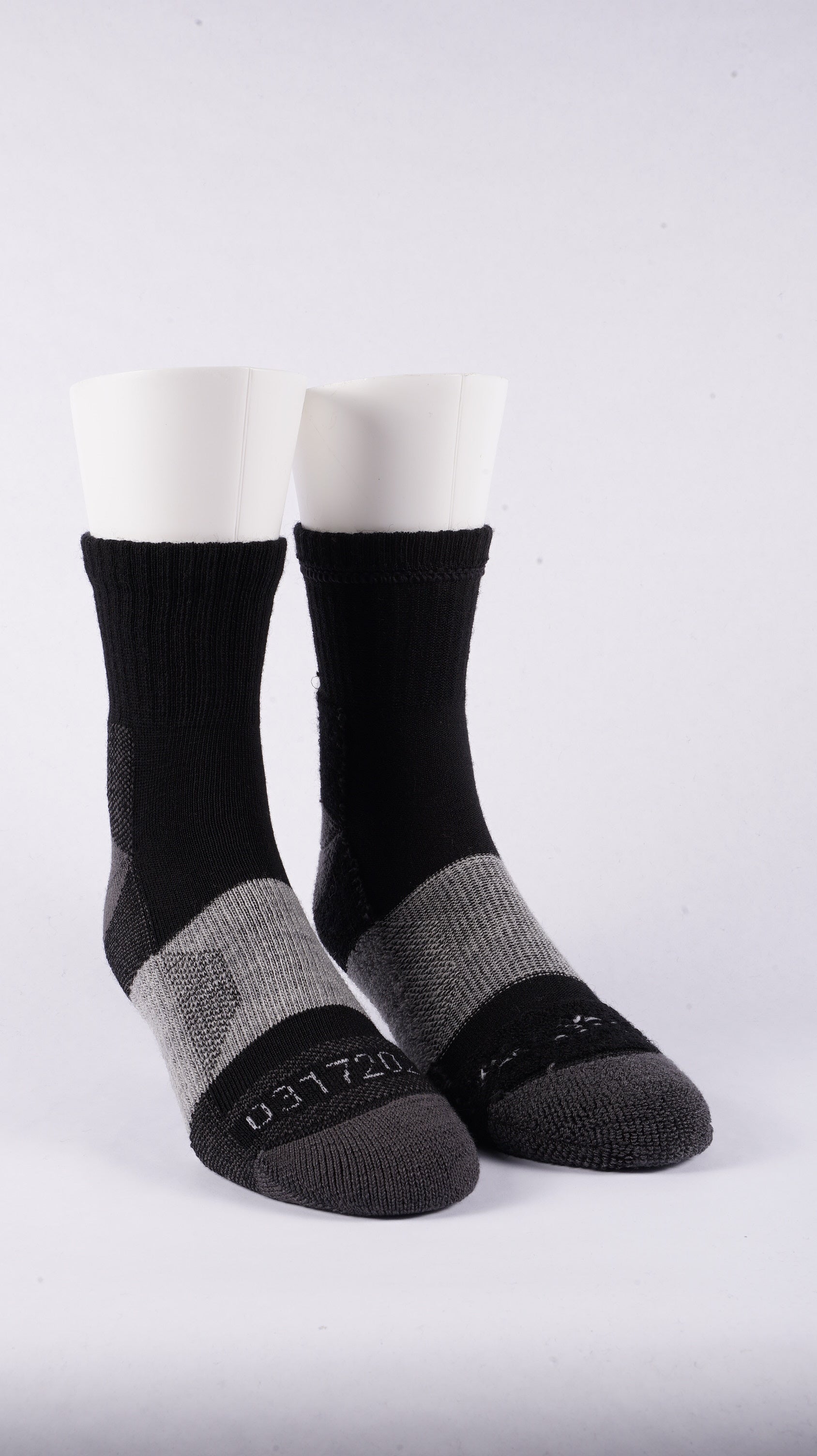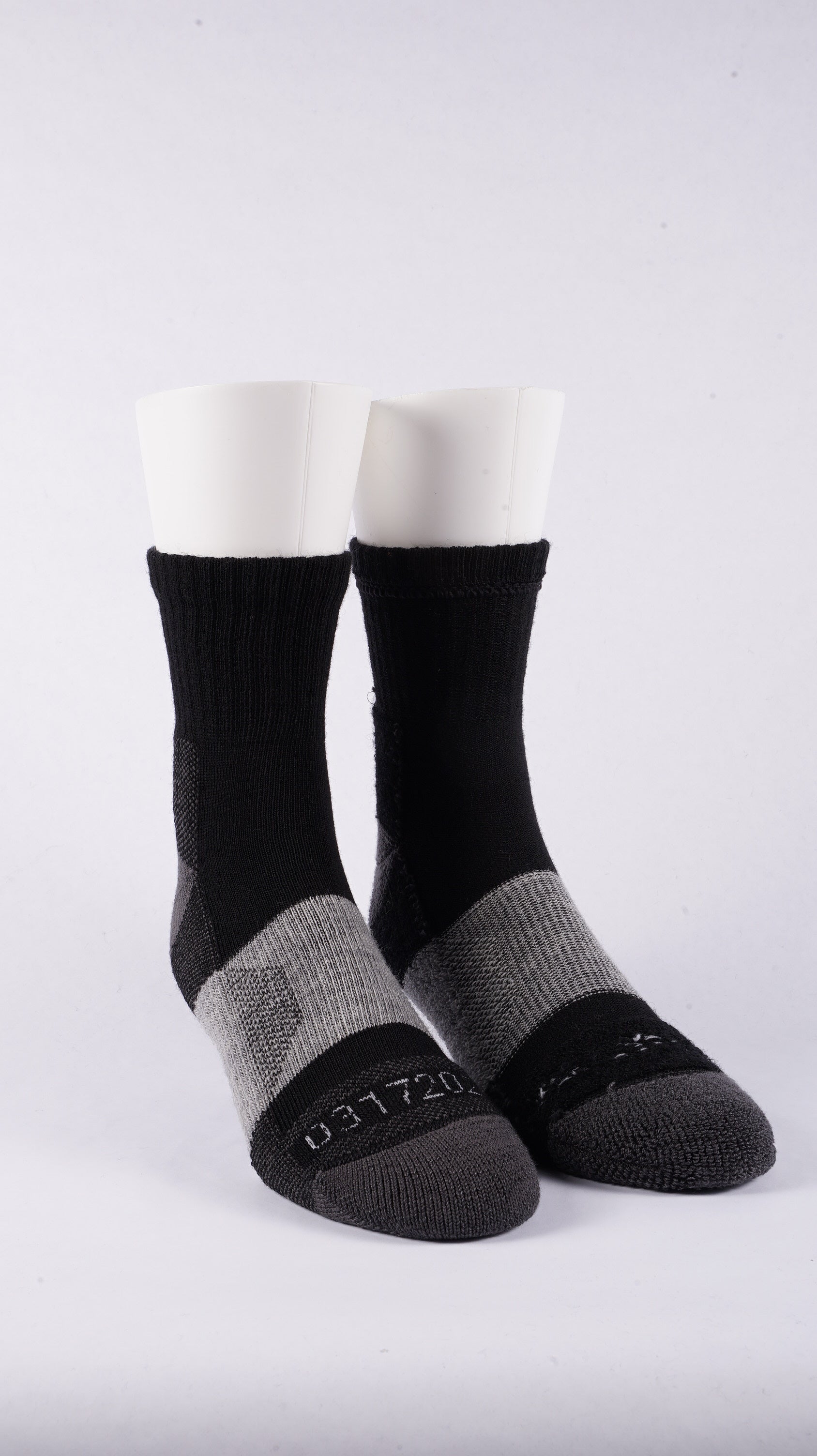 Targeted terry cushion / heavy weight construction in ridiculously soft but dry merino wool. Reinforced heel, toe, and foot bottom provide durability and support. Elasticized 3x1 rib leg and arch support for unparalleled fit. flat toe seam, terry foot bottom