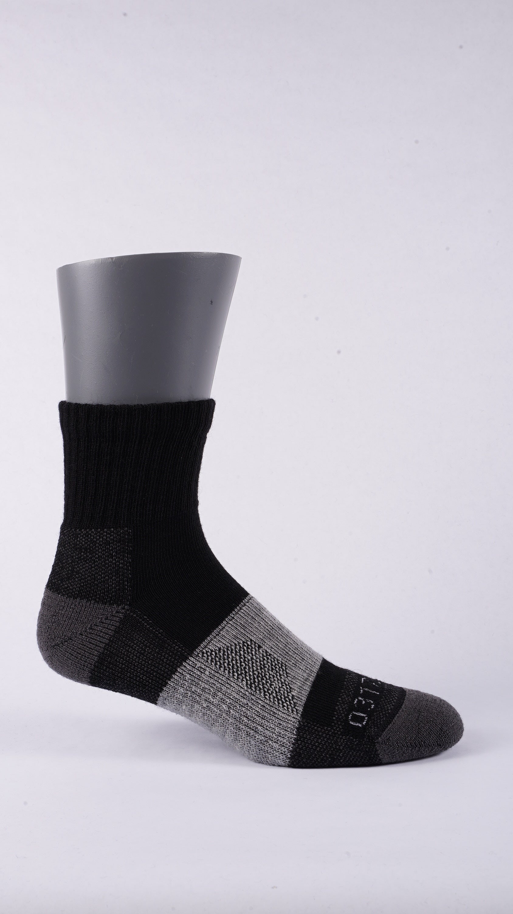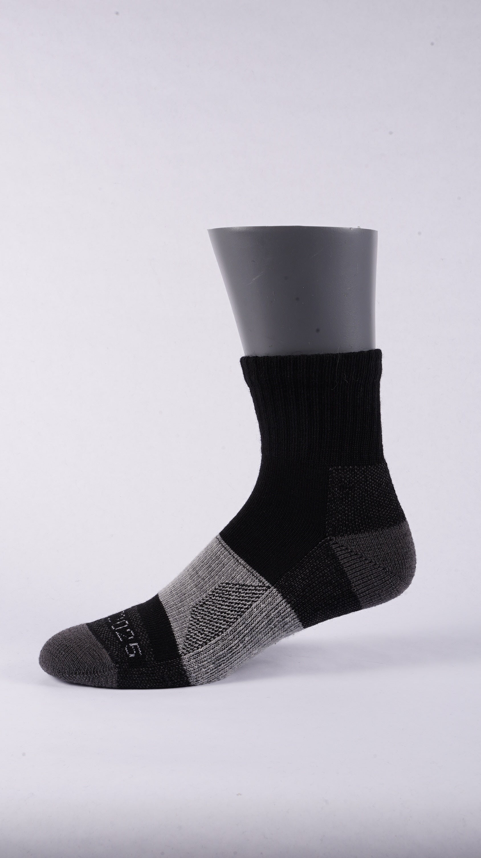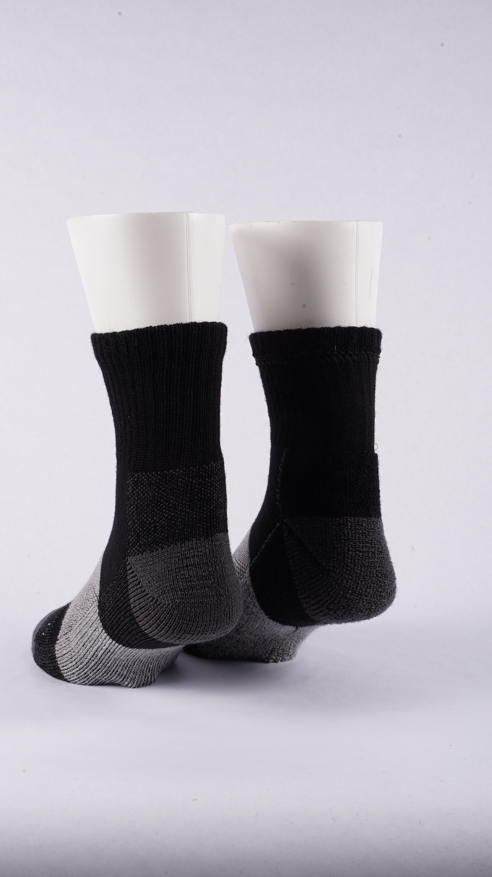 Targeted terry cushion / heavy weight construction in ridiculously soft but dry merino wool. Reinforced heel, toe, and foot bottom provide durability and support. Elasticized 3x1 rib leg and arch support for unparalleled fit. flat toe seam, terry foot bottom