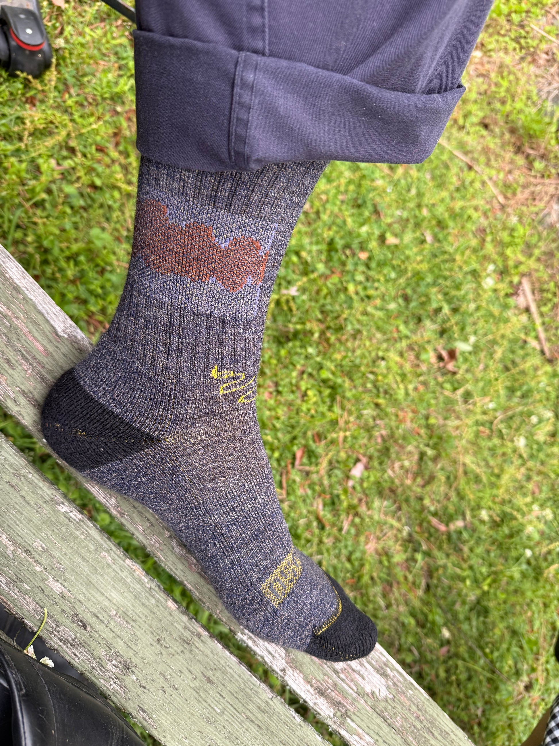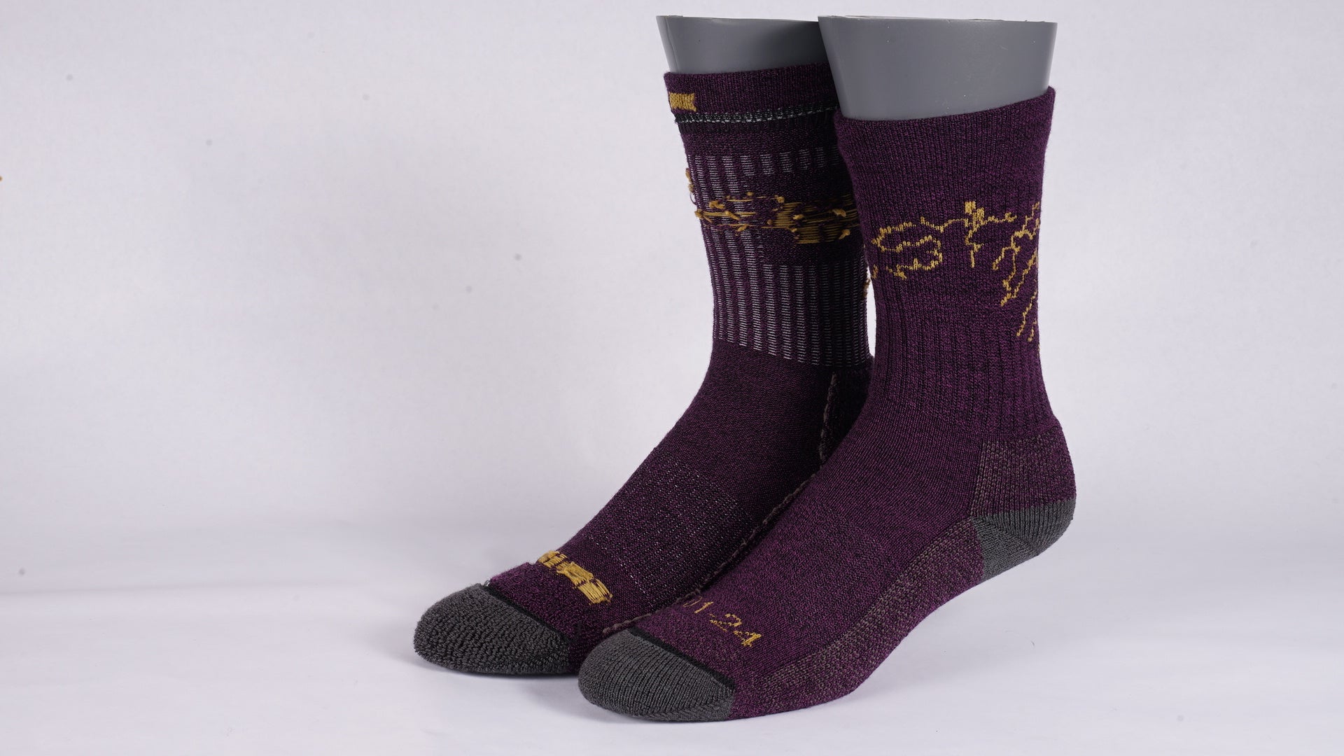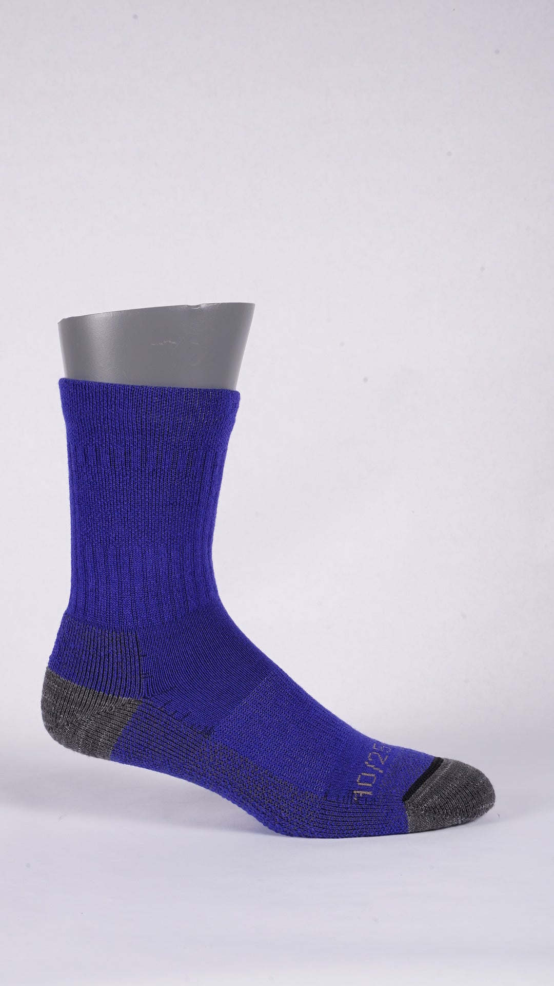 Assortment of colors in limited stock merino wool yarn in this classic boot construction. Reinforced heel, toe, and foot bottom provide durability and support. Elasticized 3x1 rib leg and arch support for unparalleled fit. Zippy contrast white nylon flat toe seam, variations on the box motif in the knit leg and topped with a pique 1x1 cuff, a knestknit classic.