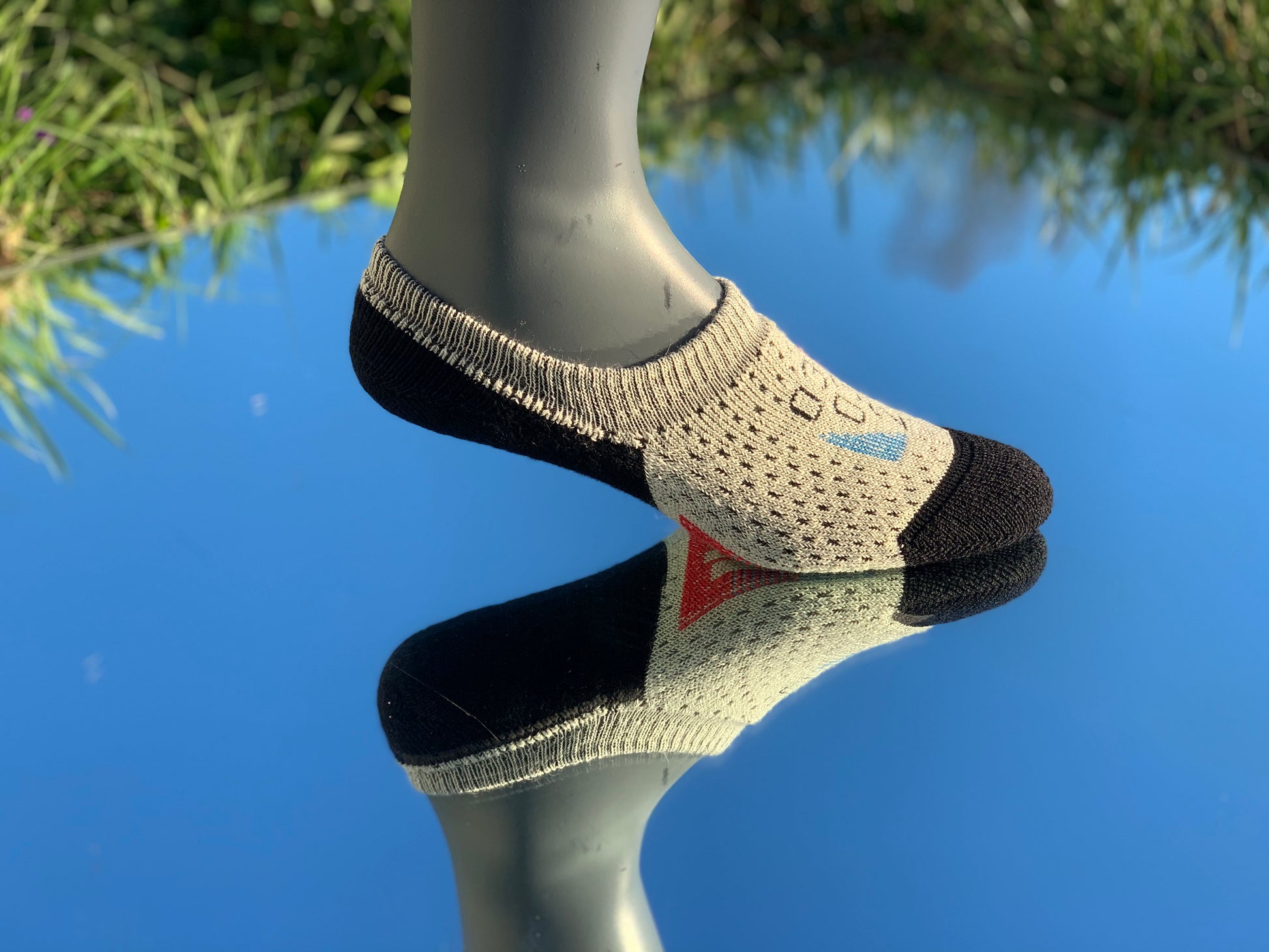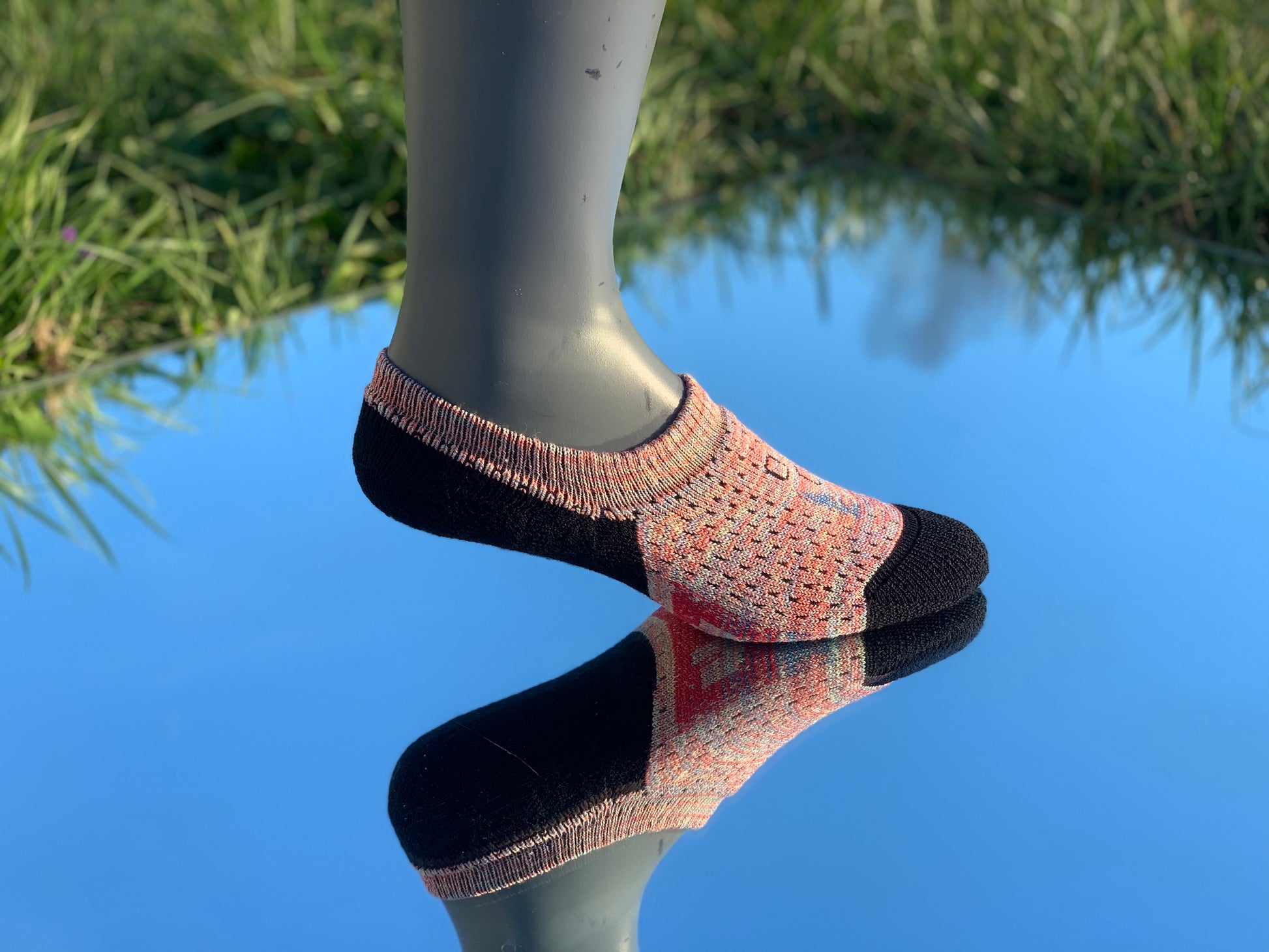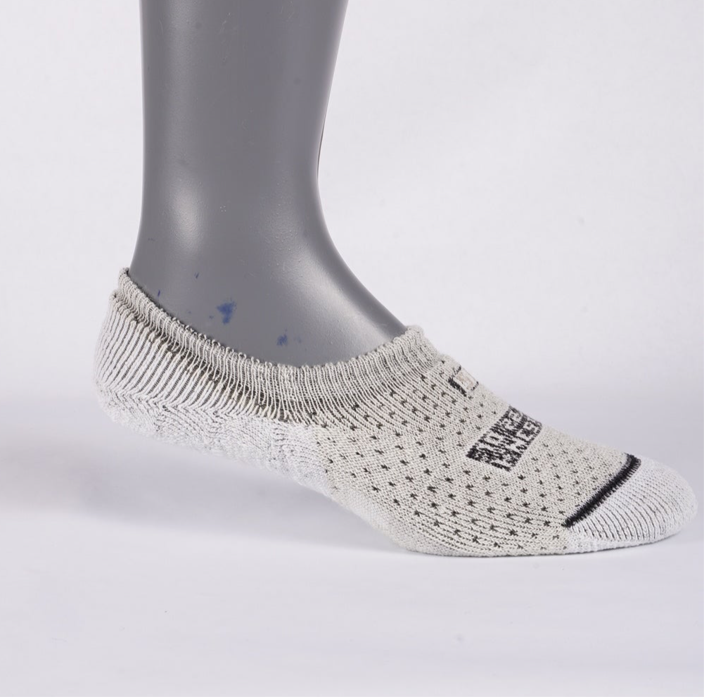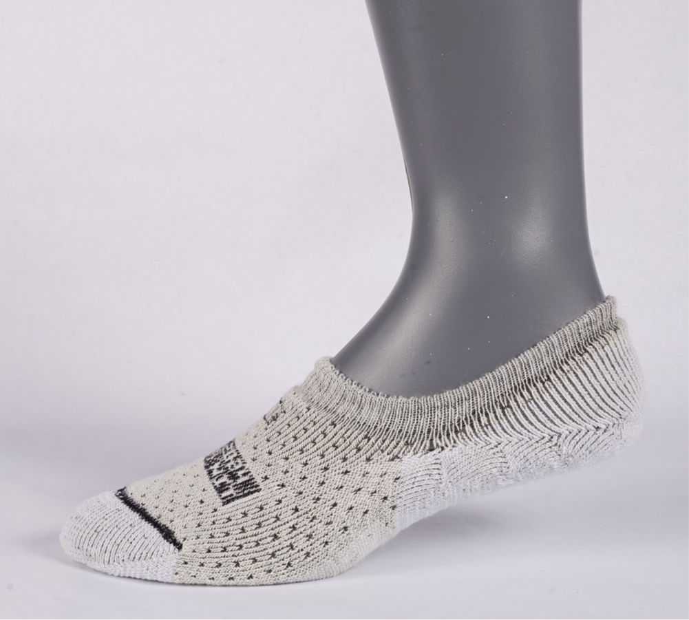 A true knestknit signature, the french terry no show delivers the most benefits of merino wool - ventilated cushioning all over your foot, moisture management, odor control, and temperature regulation that keeps you cool in the summer and warm in the winter - combined with softness and durability. This sock boasts an incredibly unique fit that incorporates four reciprocated heel pockets while utilizing tension created between the toe and the heel, resulting in the lowest profile fit we can make. Enjoy the cushion with none of the visuals!
