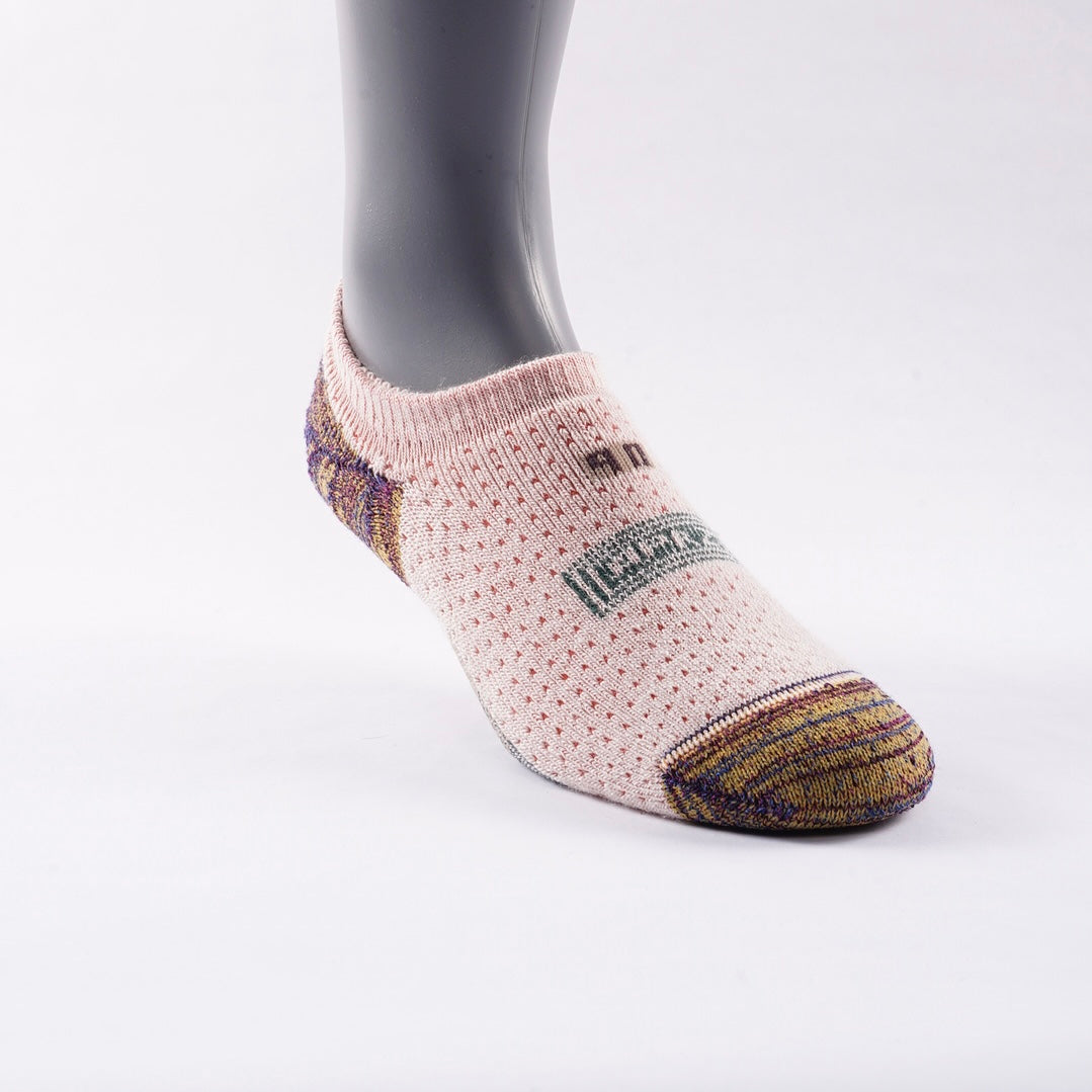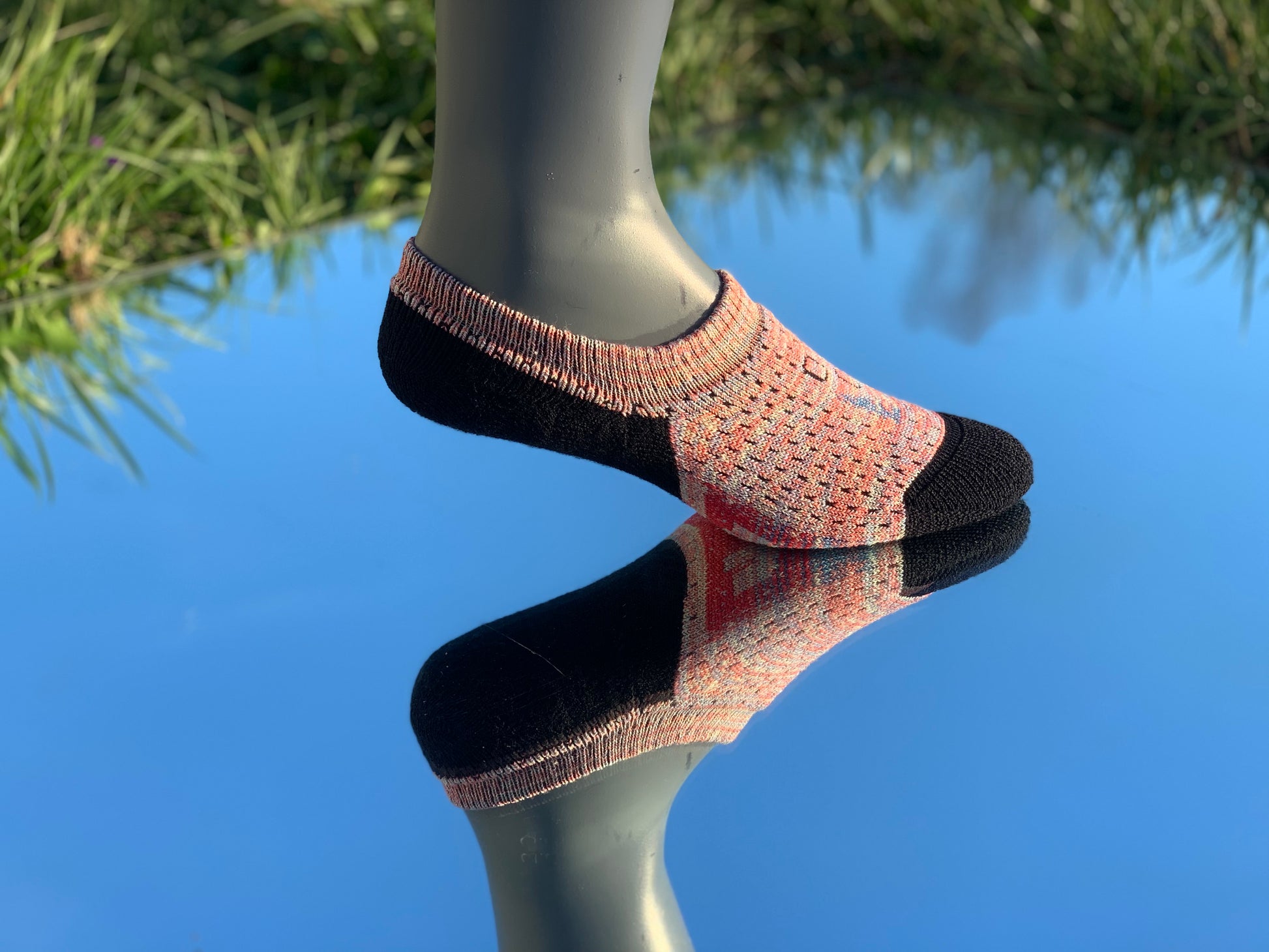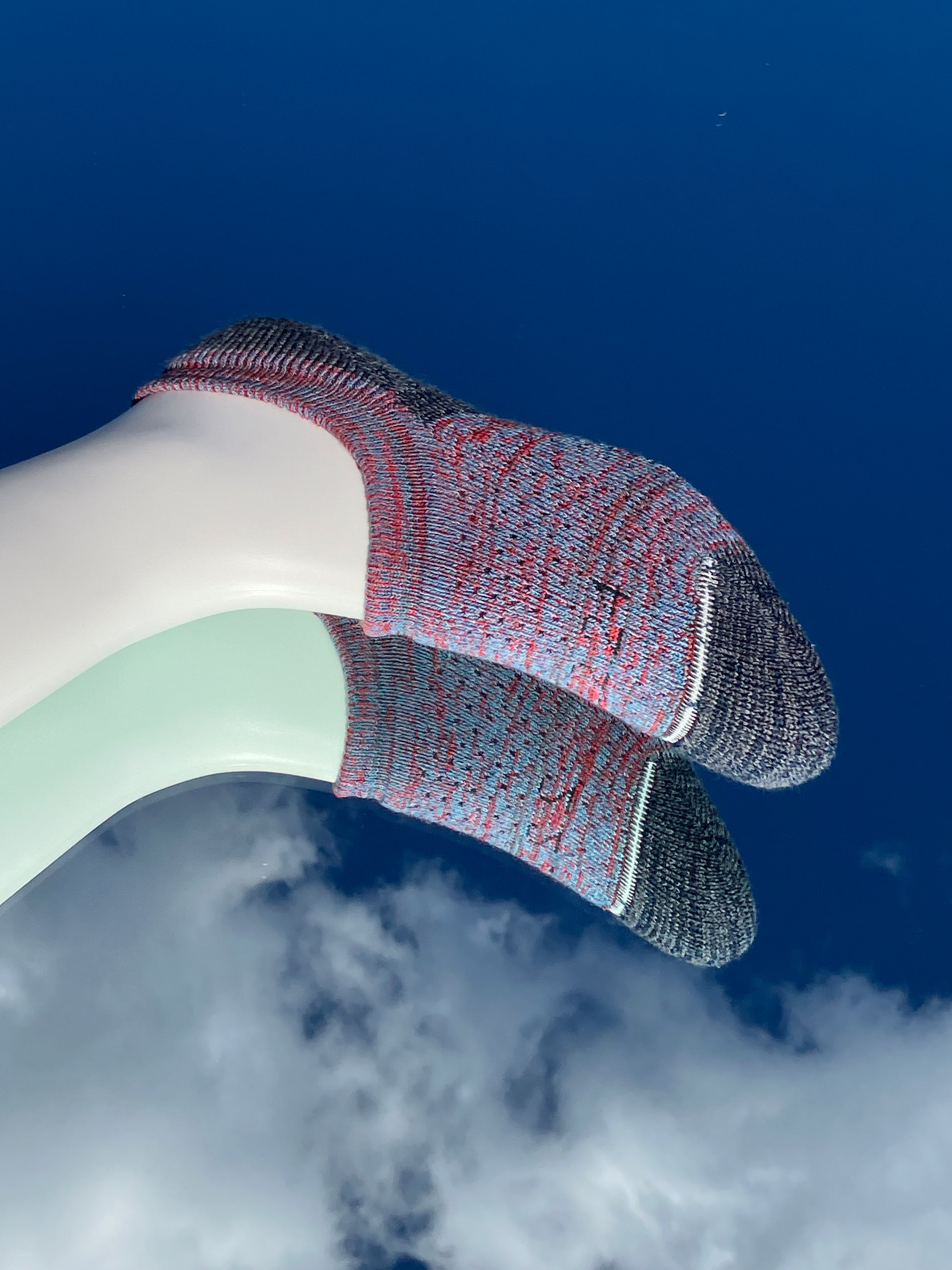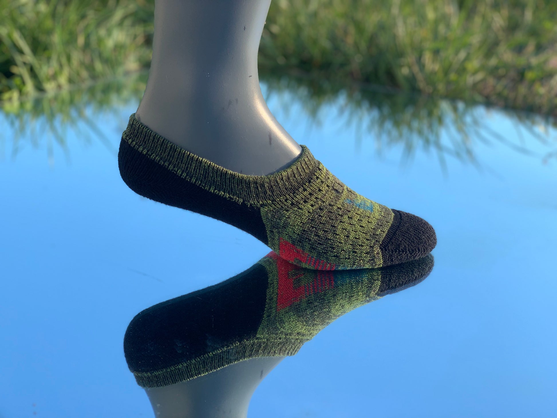 A true knestknit signature, the french terry no show delivers the most benefits of merino wool - ventilated cushioning all over your foot, moisture management, odor control, and temperature regulation that keeps you cool in the summer and warm in the winter - combined with softness and durability. This sock boasts an incredibly unique fit that incorporates four reciprocated heel pockets while utilizing tension created between the toe and the heel, resulting in the lowest profile fit we can make. Enjoy the cushion with none of the visuals!